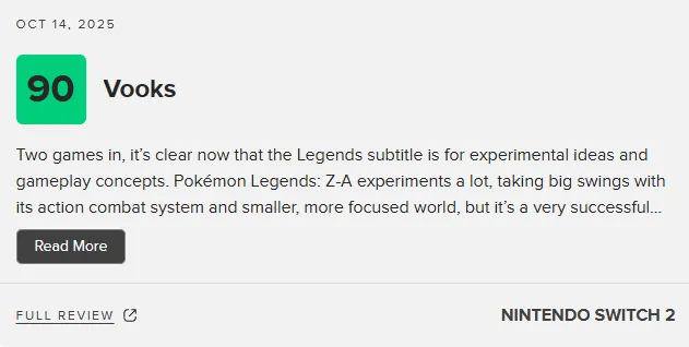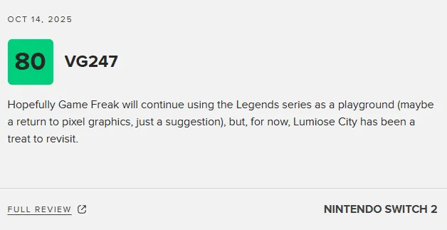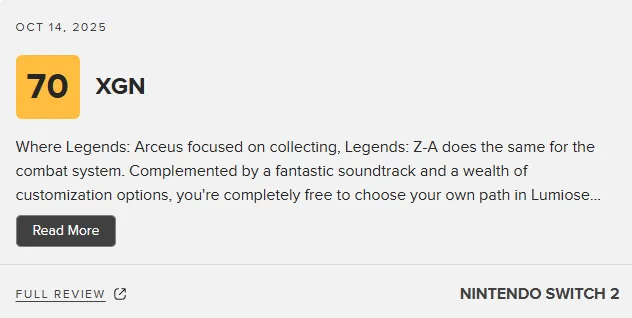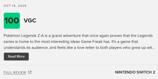《宝可梦传奇Z-A》是一场宏大的冒险,再次证明了“传奇”系列承载了Game Freak最精彩的创意。这是一款真正理解其受众的游戏,就像是一封情书,写给一直陪伴《宝可梦传奇》成长的玩家们。全新的战斗系统对我来说非常有趣,Rogue Mega Battles更充满了震撼的乐趣。它和传统的回合制方式游戏一样,随着队伍等级的提升,战斗将会变得非常轻松。我真的希望《宝可梦传奇》系列能够长久延续下去!
