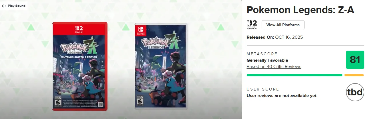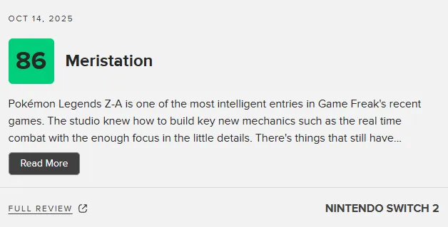 经典宝可梦题材打造的游戏《宝可梦传说:Z-A》正式来临,这一作创意性加入了全新的玩法要素,相信很多该系列的爱好者都很兴奋。现在媒体评分已经出炉,M站评分目前为81分,总体好评!