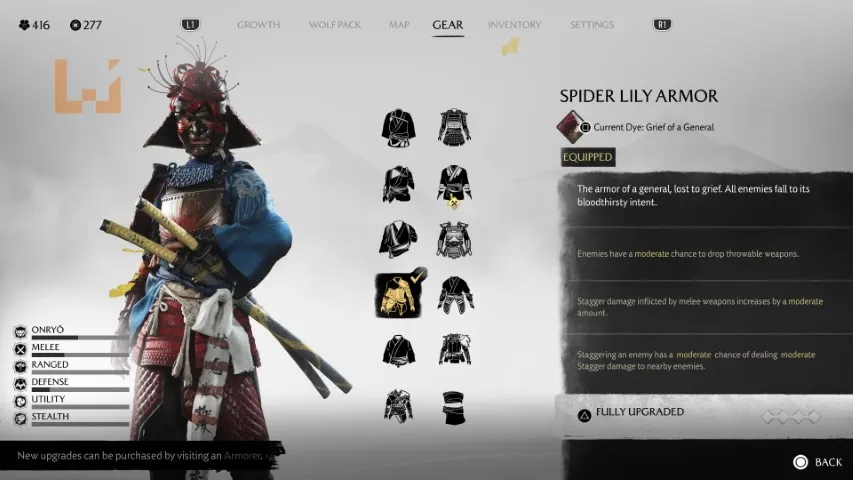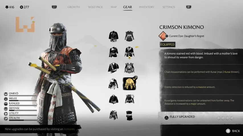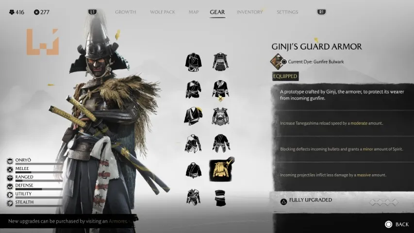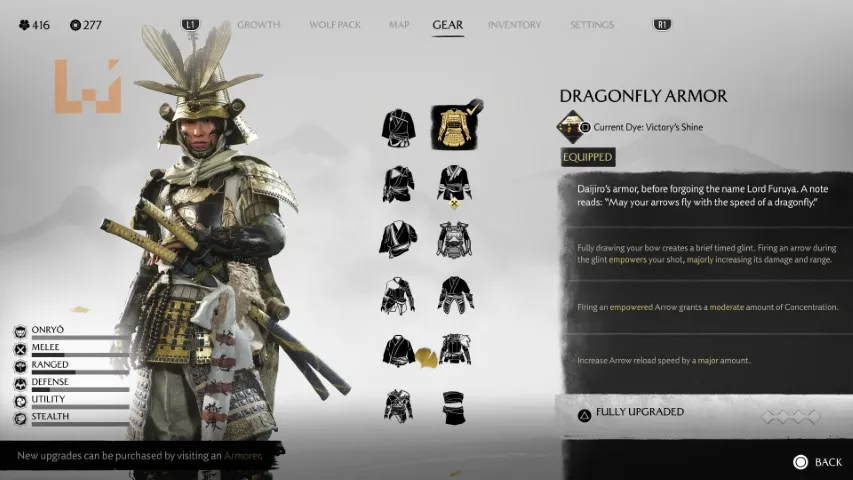 此铠甲来自主线任务,不会错过。在追踪「狡狐」(The Kitsune,羊蹄六人众之一)时,你会发现一间陈列着此铠甲的房屋。直接取用并装备即可。