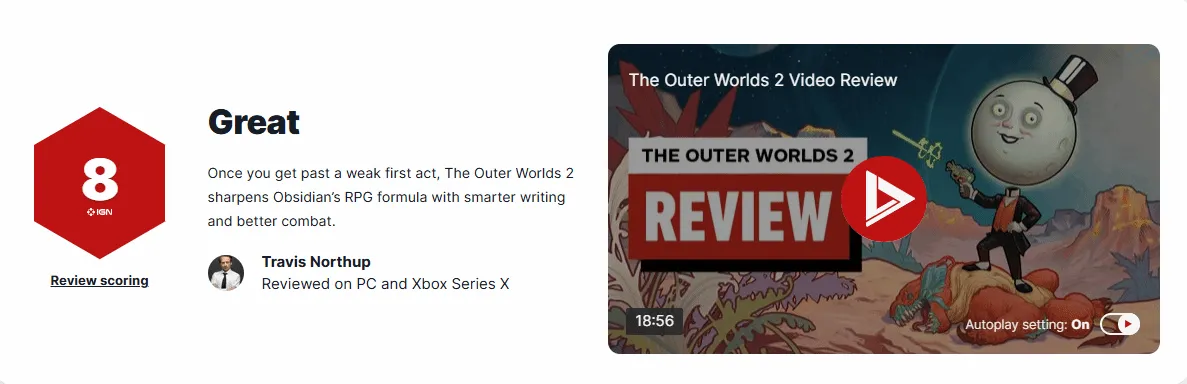 由黑曜石打造的游戏《天外世界2》,是该系列的第二作,想必很多玩家也是非常期待。现在,该作的媒体评测已经解禁,《天外世界2》以其出色的剧本的战斗,获得了IGN8分的评分,将黑曜石工作室擅长的RPG元素发挥到极致。