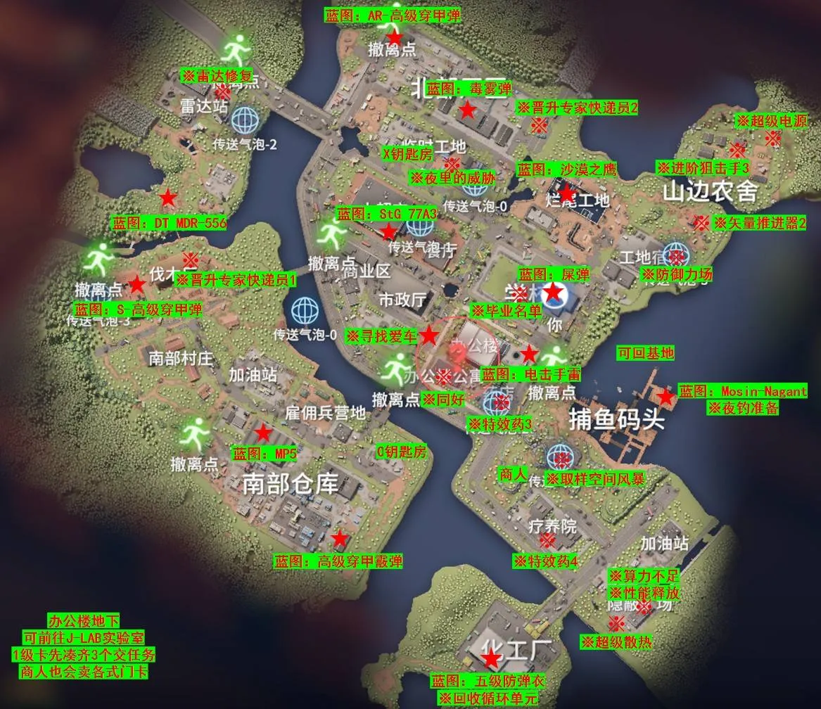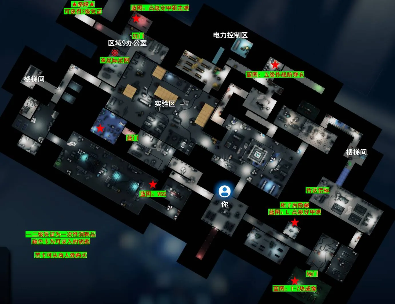 ※前往实验室:在办公楼内部的地下一层 需消耗1张1级凭证 右下角(加油站到隐藏矿场)体感刷新稳定 也可以从商人处购买 完成技术中心小明的【复制通行证】任务后可在基地购买1级凭证