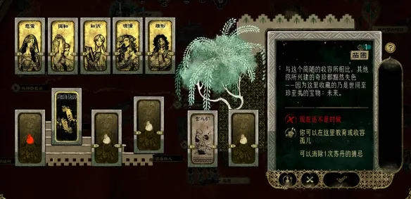 4.最后是最麻烦藏的最深的密教遗孤,需要条件有拜铃耶入队,点了命运商店神之侧身像,过程中手里还需要铜或银的密教思潮