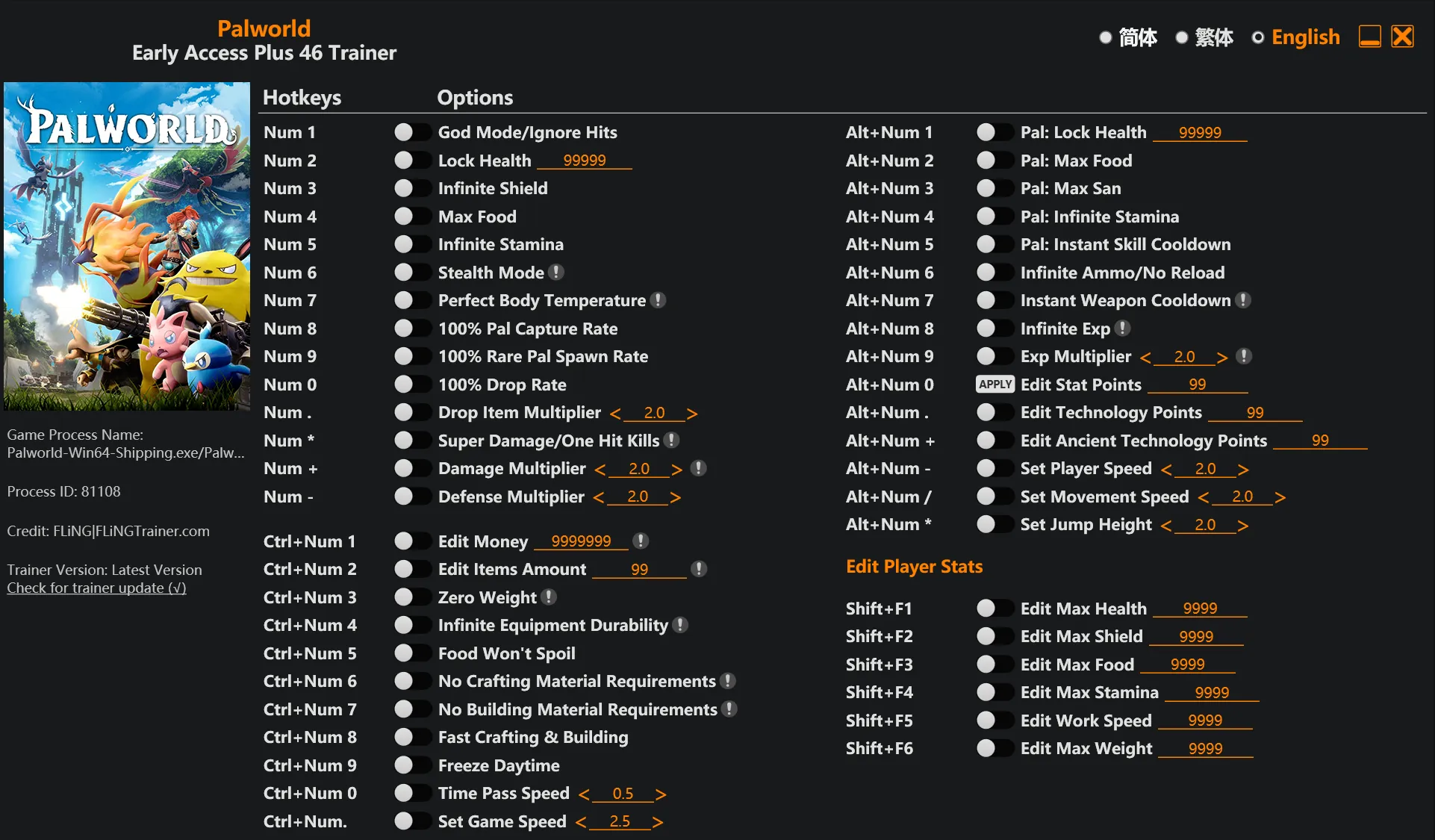 Alt+数字键 4 – 帕鲁:无限体力