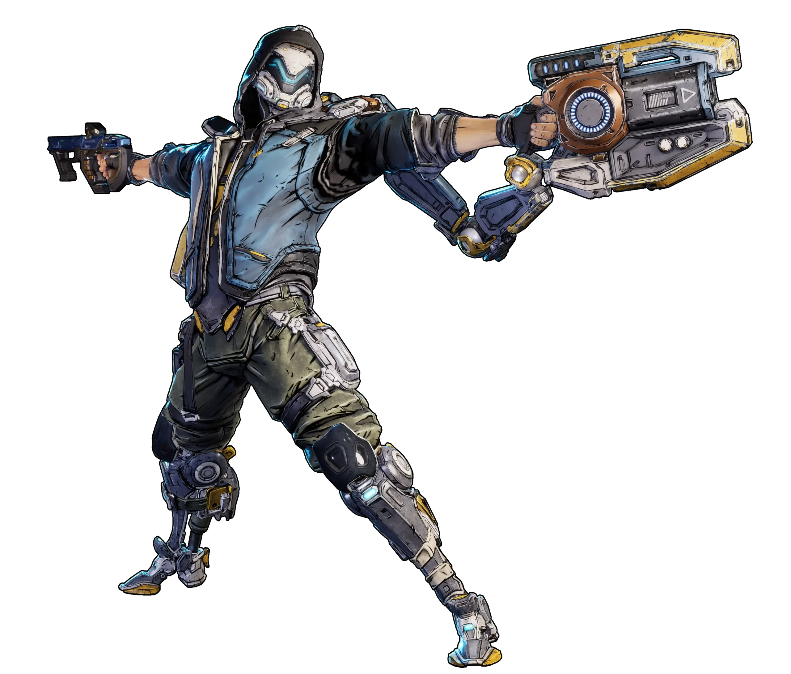 拉法的“死寂”铁骨套装配备了各种高科技武器:他可以用阿波菲斯长矛臂炮远程轰击敌人,用肩扛式和平破坏者火炮中距离击穿敌人,或者用双持电弧匕首能量刃发动致命近战攻击。